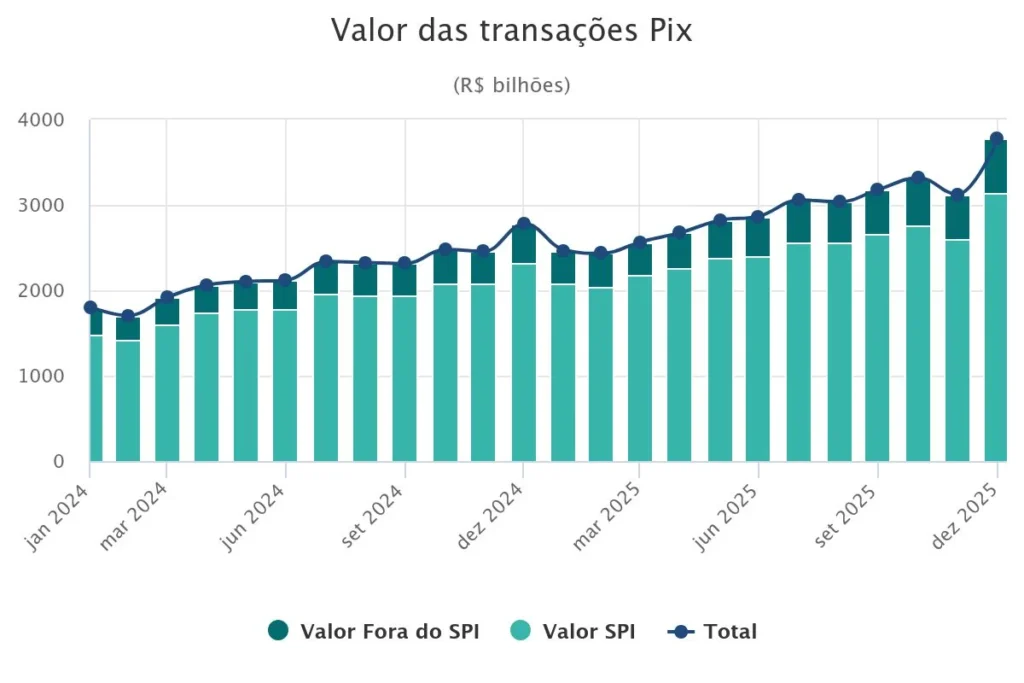 O Pix encerrou 2025 reforçando um movimento que já vinha se desenhando nos últimos anos: a consolidação definitiva como a principal infraestrutura de pagamentos do Brasil. Segundo dados divulgados pelo Banco Central do Brasil, o sistema de pagamentos instantâneos movimentou R$ 35,3 trilhões ao longo do ano, representando um crescimento de 33,7% em relação a 2024.